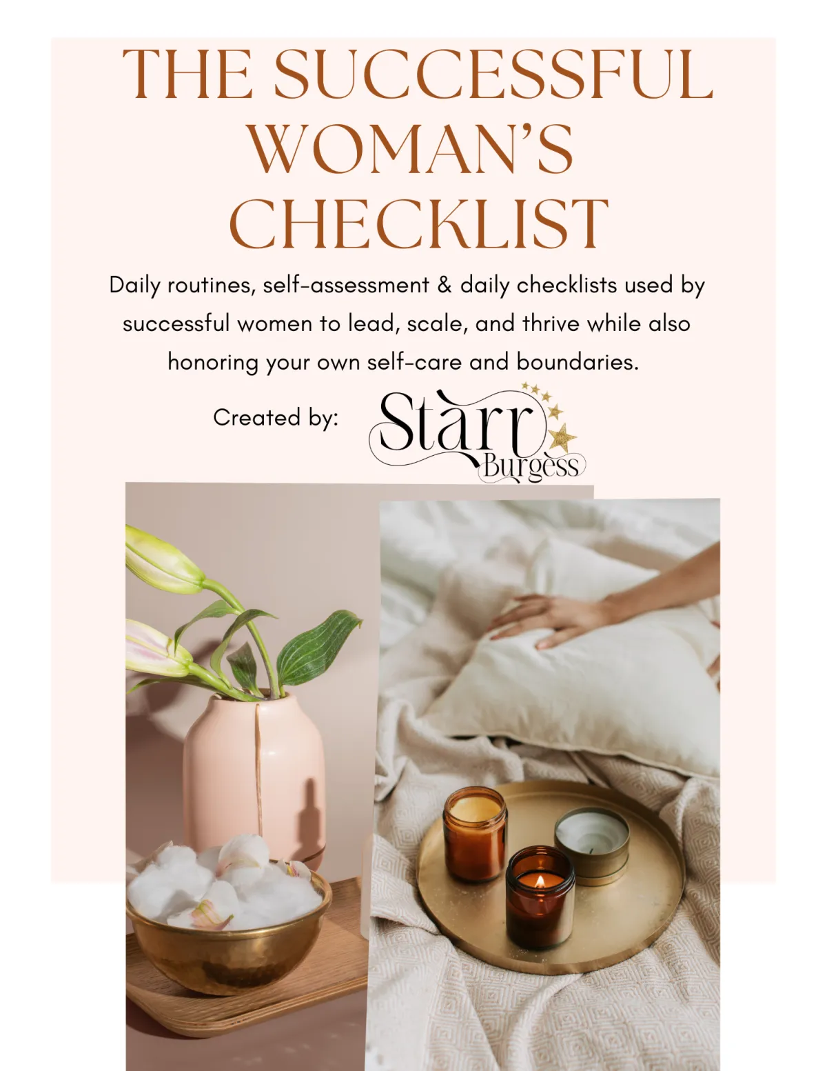 Daily routines, self-assessment, and a checklist used by the world's Successful Women to grow their business while also honoring their own self-care and boundaries.